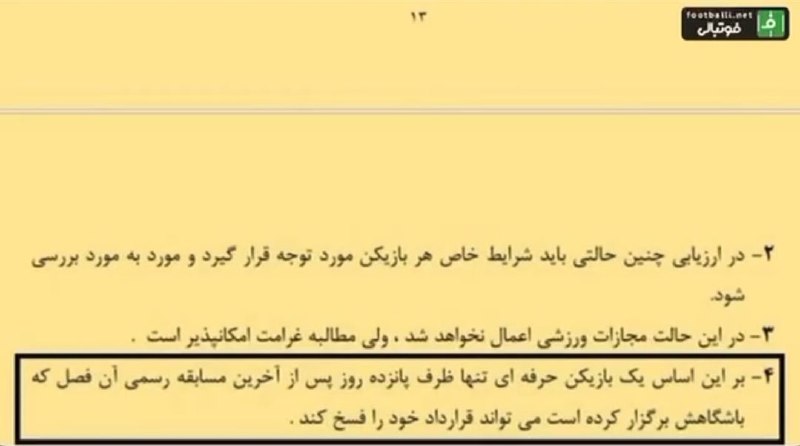 ⚠️⛔️قانون به صورت مکتوب میگه ۱۵ روز بعد از پایان فصل فوتبالی (لیگ و حذفی) اگر بخشی از مطالبات خودش رو نگرفته باشه می‌تونه یکطرفه فسخ کنه.