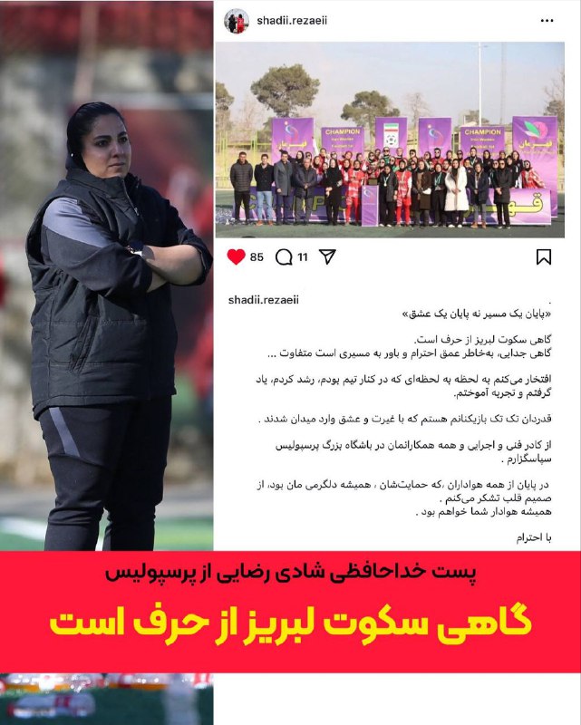 شادی رضایی با گذاشتن یک استوری از پرسپولیس خداحافظی کرد
