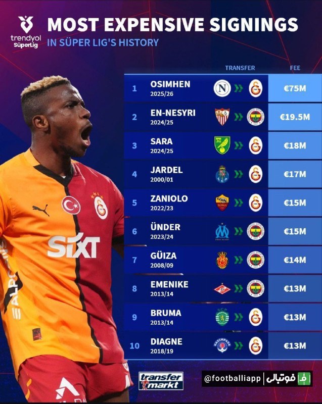 گرون‌ترین نقل‌وانتقالات فوتبال کشور دوست و همسایه ترکیه
