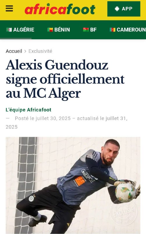 طبق اعلام سایت آفریقا فوت، الکسی گندوز گلر فصل قبل پرسپولیس با قراردادی دو ساله به تیم مولودیه الجزایر پیوست