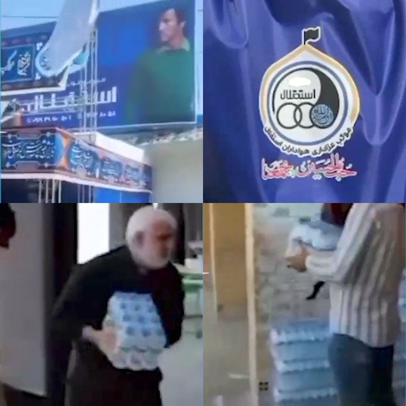 استقلال موکب زده برای زائران لب‌مرز عراق با عکس ناصرحجازی و توزیع آب‌!