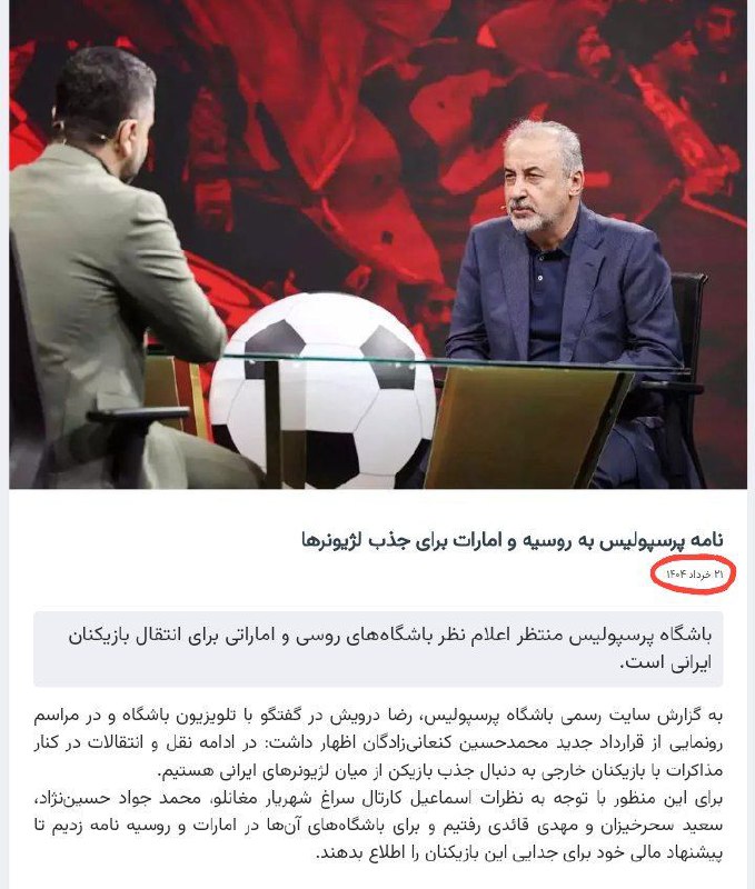 پرسپولیس سر فسخ احمدزاده و مهری مشکل داره‌، دورسون‌ مشخص نیست میره با میمونه‌، گفتن جز ابرقویی‌ مدافع خارجی میگیریم نگرفتن‌، تو هافبک به‌ یه