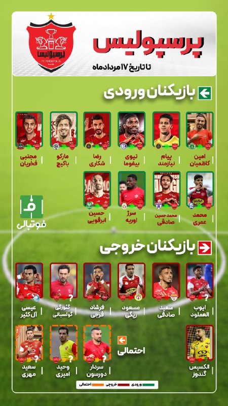 بازیکنان ورودی، خروجی و احتمالی تیم فوتبال پرسپولیس تا امروز