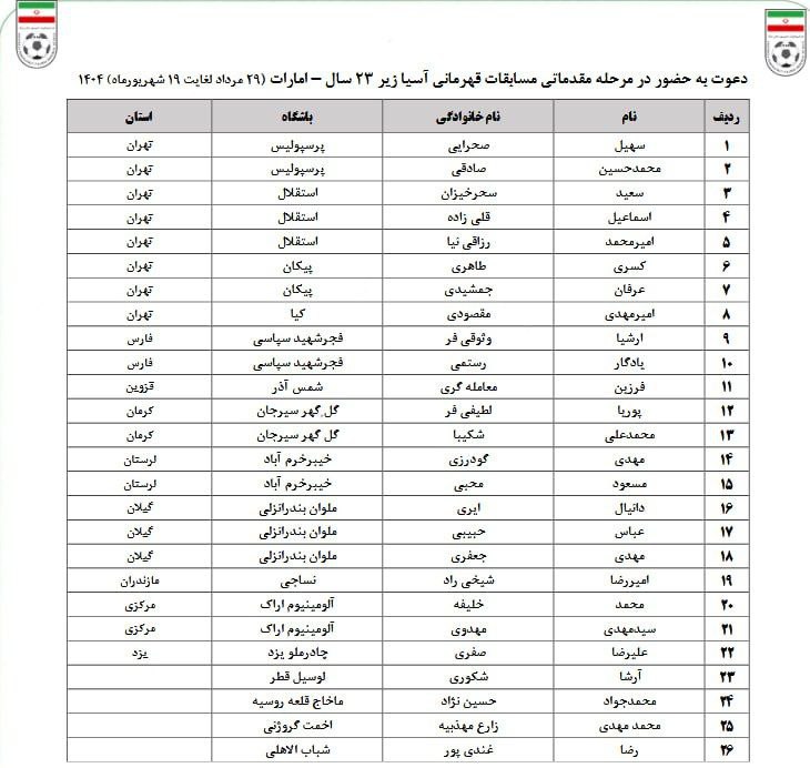 سهیل صحرایی و محمدحسین صادقی به اردوی تیم‌ملی امید ایران دعوت شدند