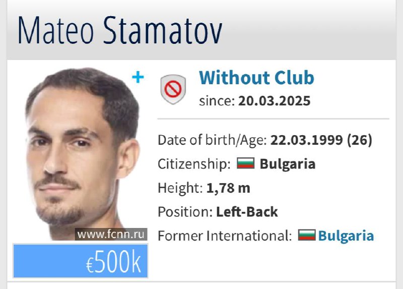 متئو استاماتوف دفاع چپ تیم ملی بلغارستان گزینه اصلی وحید هاشمیان برای تقویت سمت چپ پرسپولیس است