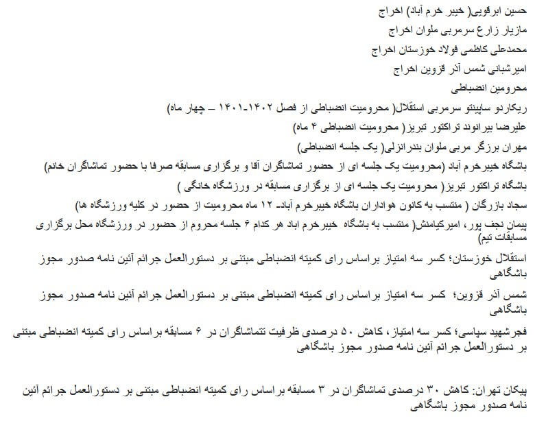با اعلام سازمان لیگ بر اساس رای کمیته انضباطی و دستورالعمل جرائم آییننامه صدور مجوز باشگاهی، از تیمهای استقلال خوزستان، شمسآذر و فجرسپاسی ۳ امتیاز کسر شد.