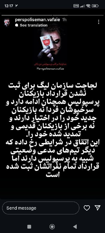 استوری حامد وفایی خبرنگار نزدیک به رضا درویش