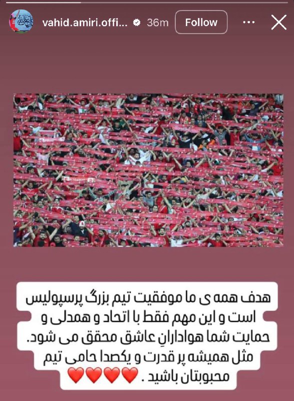 🔴 استوری وحید امیری در واکنش به اتفاقات اخیر