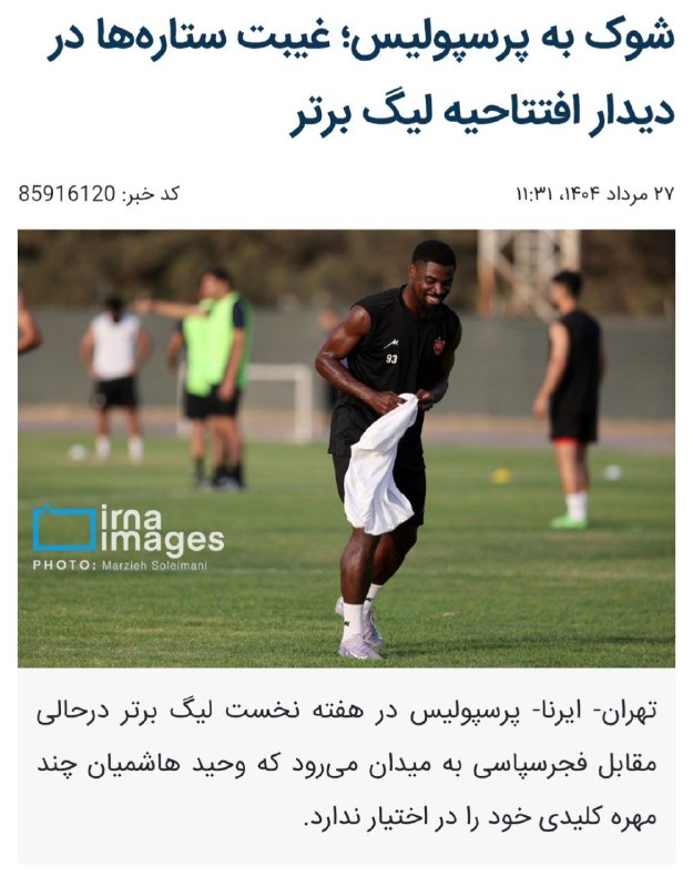 🔴ایرنا: سرژ اوریه و تیوی بیفوما در نخستین دیدار پرسپولیس مقابل فجرسپاسی در رقابت‌های لیگ برتر غایب خواهند بود.