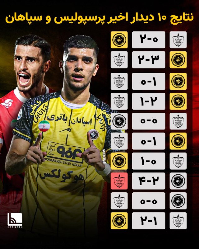 🤩🤩نتایج ده تقابل اخیر پرسپولیس و سپاهان