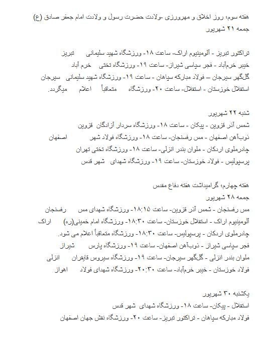 🚨🔹برنامه مسابقات هفته‌های سوم تا نهم لیگ برتر اعلام شد