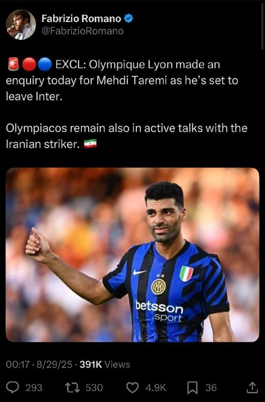 ❗️واکنش طارمی به آینده باشگاهی اش: من می توانم در اینتر بمانم اما بستگی به شرایط دارد/ همه چیز با هم دوستانه است و ارتباط خوبی داریم/ می خواهیم بهترین اتفاق برای دو طرف بیفتد/باید تا آخر این تورنمنت تکلیفم روشن شود