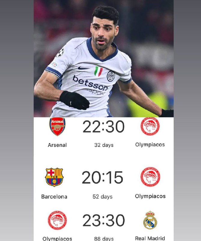 مهدی طارمی با پیوستن به المپیاکوس تنها بازیکن ایرانی حاضر در لیگ قهرمانان اروپا خواهد بود و در فصل جاری مقابل بارسلونا، رئال مادرید و آرسنال توپ خواهد زد.