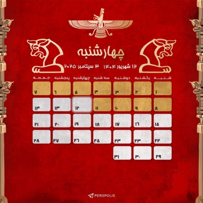 امروز چهارشنبه ۱۲ شهریور ۱۴۰۴ خورشیدی ۳ سپتامبر ۲۰۲۵ میلادی