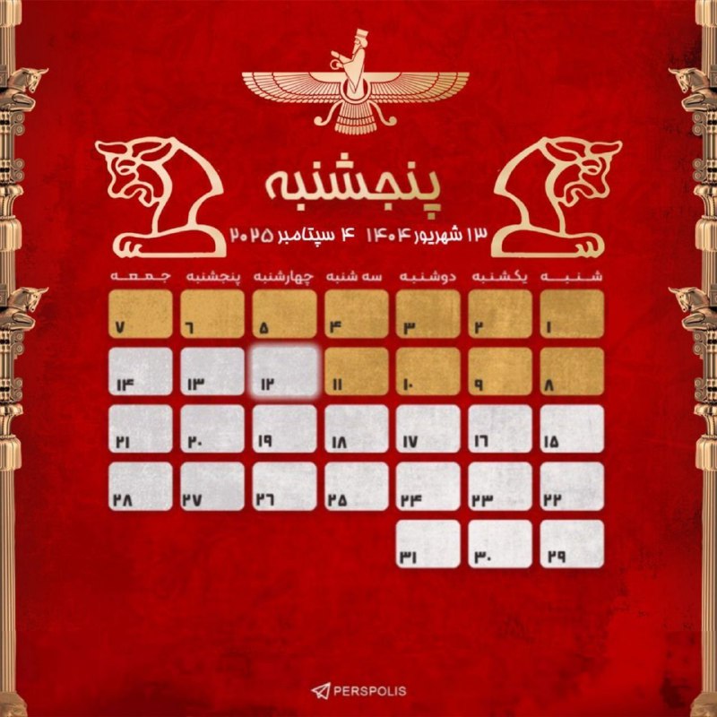 امروز جمعه ۱۴ شهریور ۱۴۰۴ خورشیدی ۵ سپتامبر ۲۰۲۵ میلادی