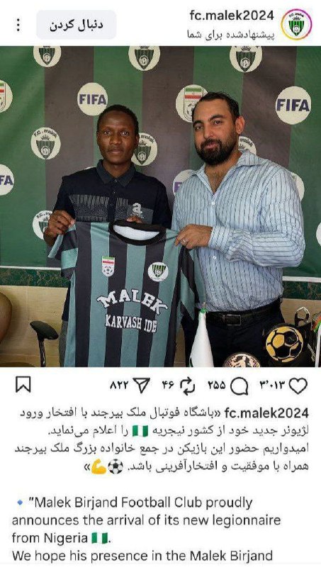 ‼️باشگاه ملک بیرجند بازیکن خارجی جذب کرده که در معرفی این بازیکن اسمش رو ننوشته😂😐