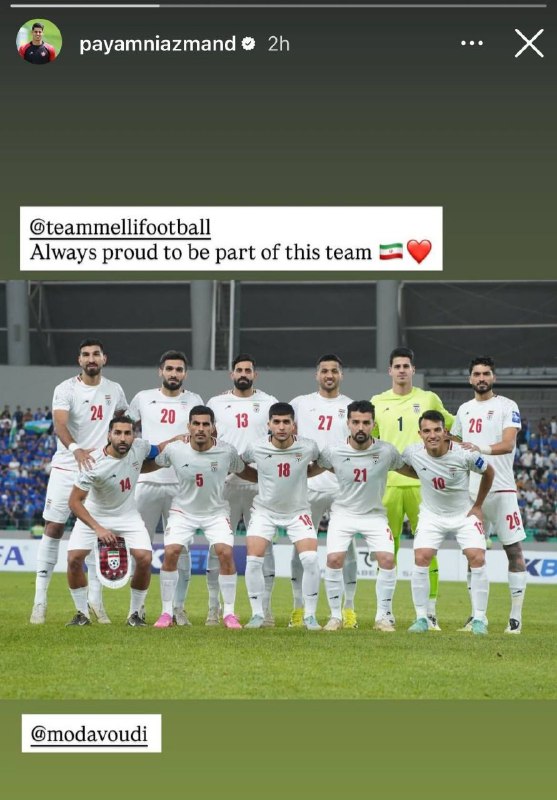 استوری پیام نیازمند: همیشه به اینکه عضوی از این تیم هستم افتخار می‌کنم