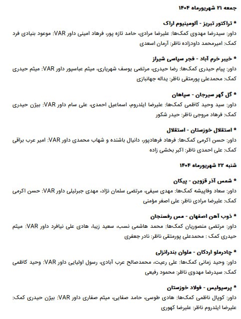 کوپال‌ناظمی داور وسط و بیژن حیدری داور سیستم واز بازی پرسپولیس و فولاد شدند
