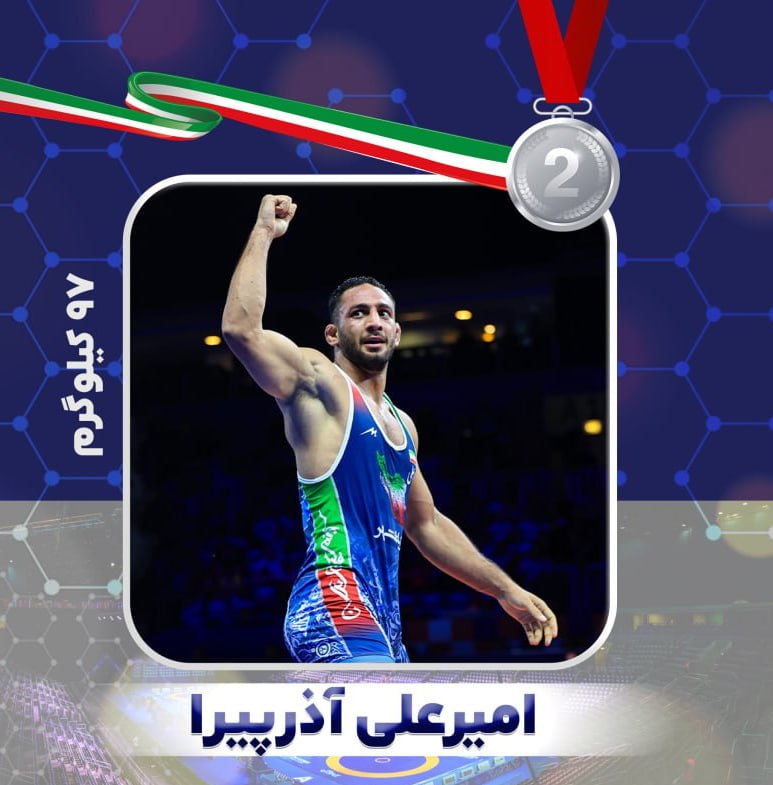 🤼‍♂️🥈امیرعلی آذرپیرا در فینال برابر کایل اسنایدر قهرمان جهان و المپیک از آمریکا با نتیجه 2-3 شکست خورد و به مدال نقره رسید.