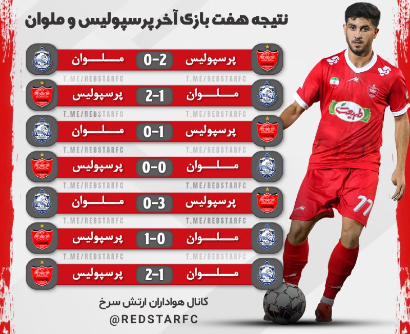 نتیجه هفت بازی آخر پرسپولیس و ملوان