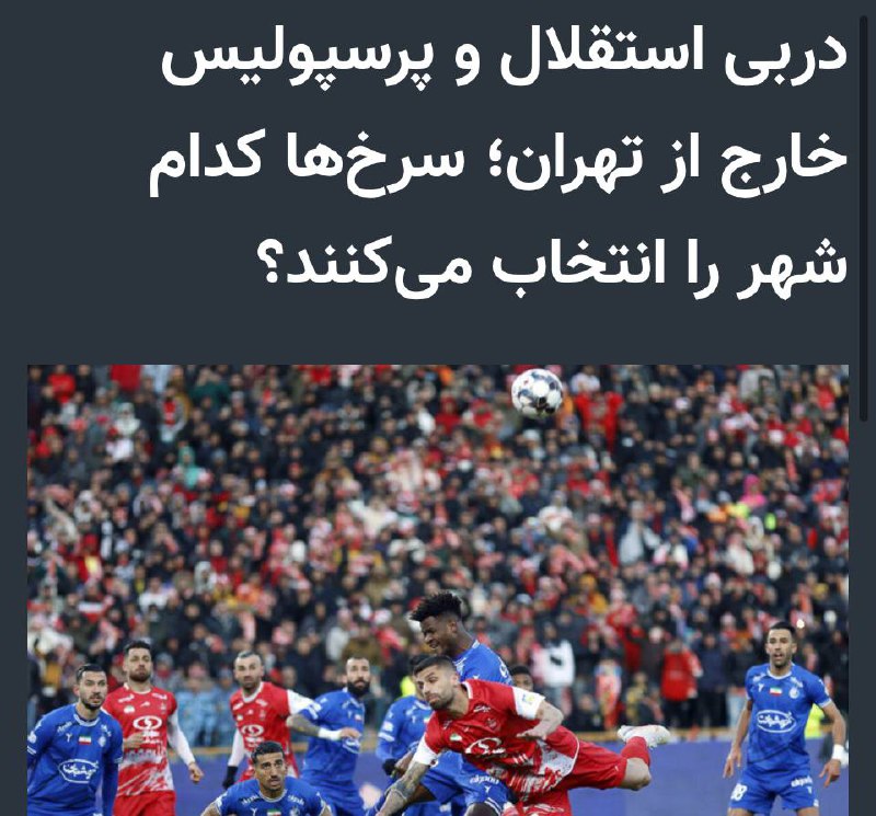 🚨🔴🤩 فوتبالی: دربی هفته دوازدهم مانند سال گذشته در خارج از تهران برگزار خواهد شد.