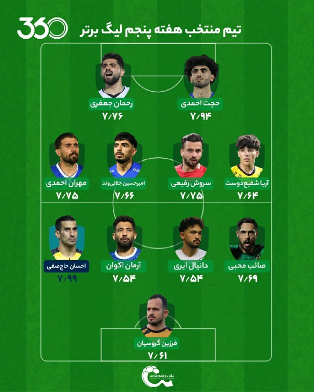🤩تیم منتخب هفته پنجم لیگ برتر با حضور رفیعی