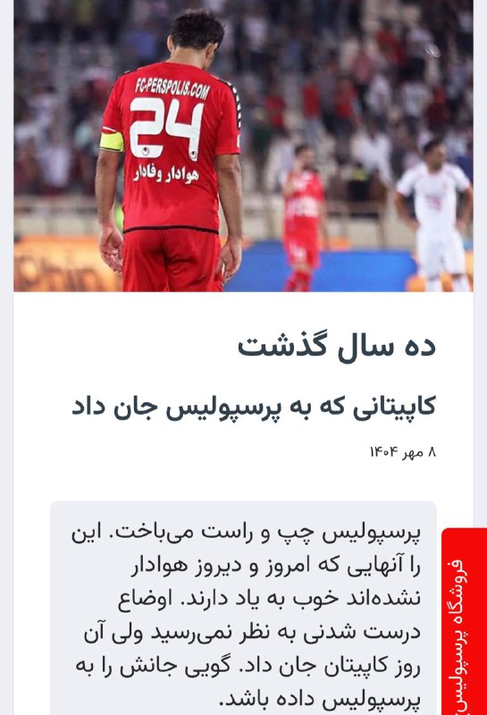 🤩 بیانیه جدید باشگاه پرسپولیس برای سالگرد درگذشت هادی نوروزی: پرسپولیس چپ و راست میباخت! این را آنهایی که امروز و دیروز هوادار نشدند به یاد دارند. اوضاع درست شدنی بنظر نمیرسید ولی آن روز کاپیتان جان داد. گویی جانش را به پرسپولیس داده باشد.