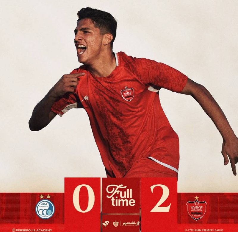 ✔️🔴تیم نوجوانان پرسپولیس در دربی تهران 2-0 مقابل استقلال برنده شد. پیش از این در دربی نونهالان و جوانان نیز پرسپولیس برنده دربی شده بود!