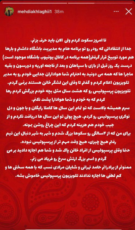 استوری جدید مهدی اخلاقی مجری تلویزیون پرسپولیس