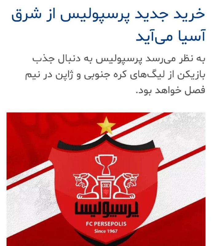 ‼️خبرورزشی: مدیران پرسپولیس به دنبال جذب بازیکن از لیگ‌های ژاپن و کره جنوبی در نیم فصل هستند.