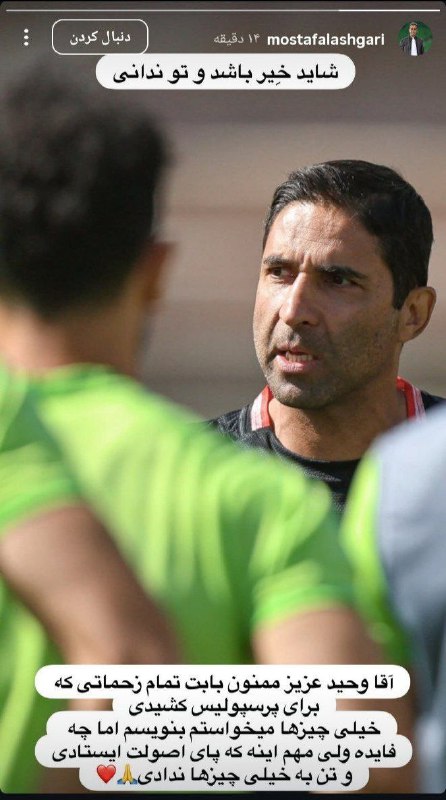 استوری جواد کاظمیان بازیکن سابق پرسپولیس
