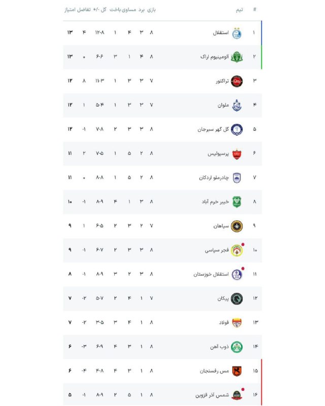 🔴 نتایج کامل بازی‌های هفته هشتم لیگ‌برتر