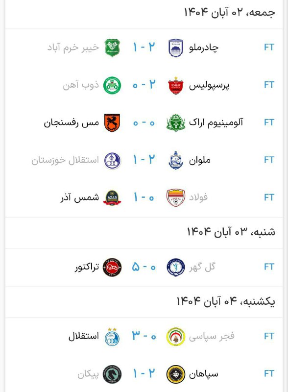 🔴 نتایج کامل بازی‌های هفته هشتم لیگ‌برتر