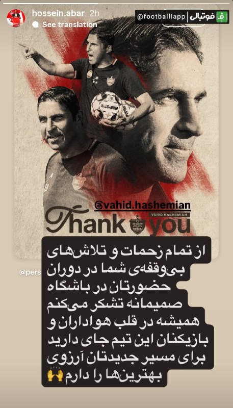 🔴استوری کنعانی‌زادگان و ابرقویی برای هاشمیان پس از جدایی او از این باشگاه