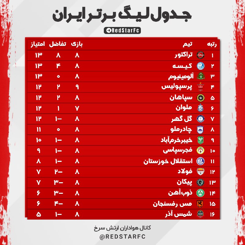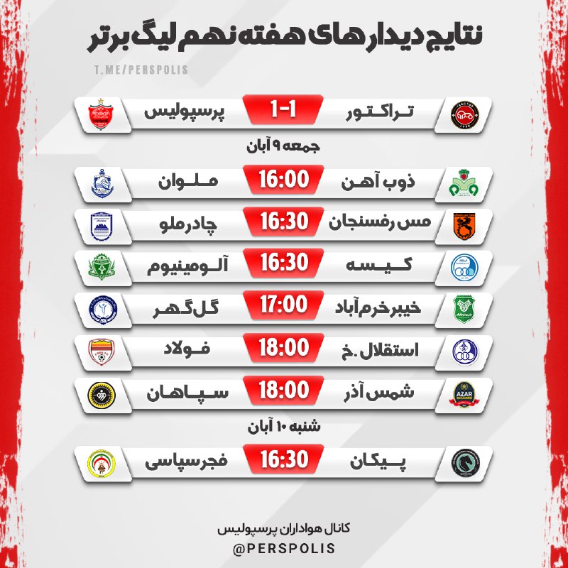 برنامه ادامه دیدار های هفته نهم لیگ برتر