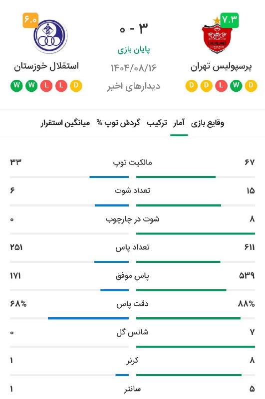 آمار فوق‌العاده از بازی امروز پرسپولیس