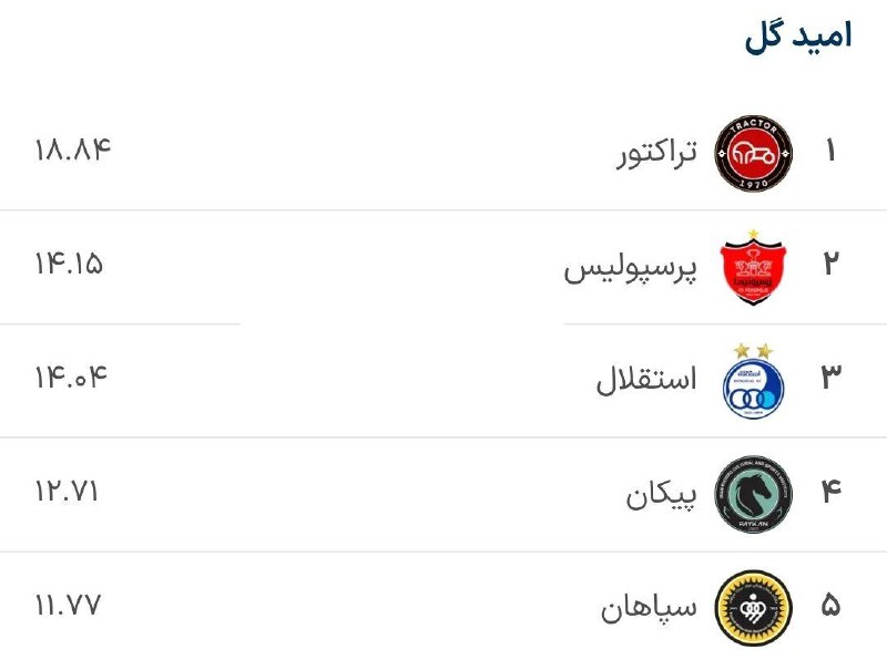 تیم‌های برتر لیگ‌برتر از نظر امید گل