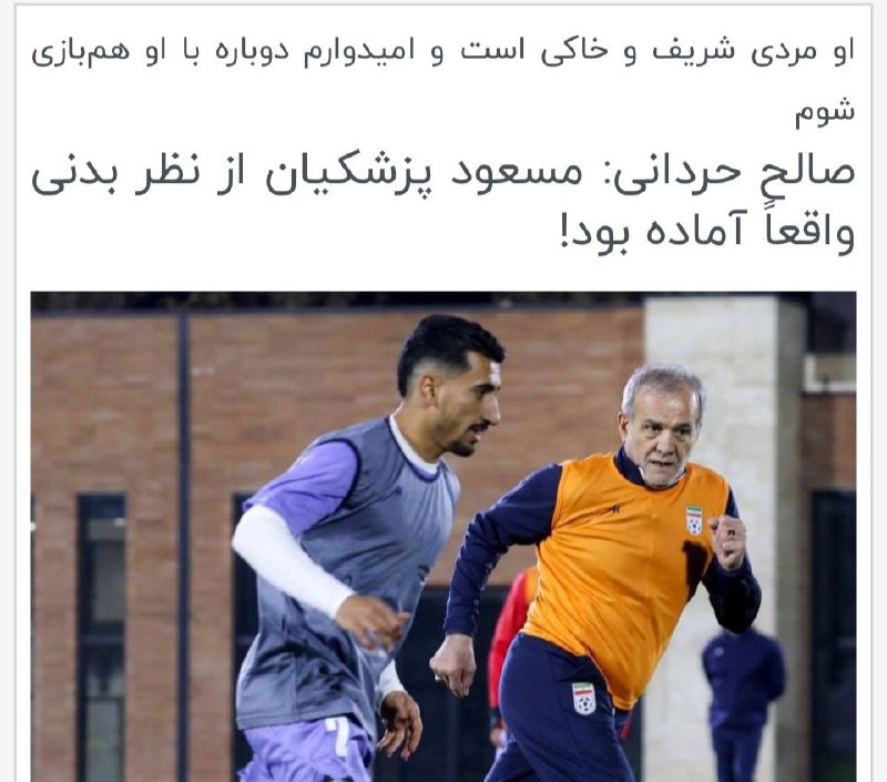 صالح حردانی: مسعود پزشکیان از نظر بدنی واقعا آماده بود و پا به پای ما تمرین کرد. او مردی شریف و خاکی است.
