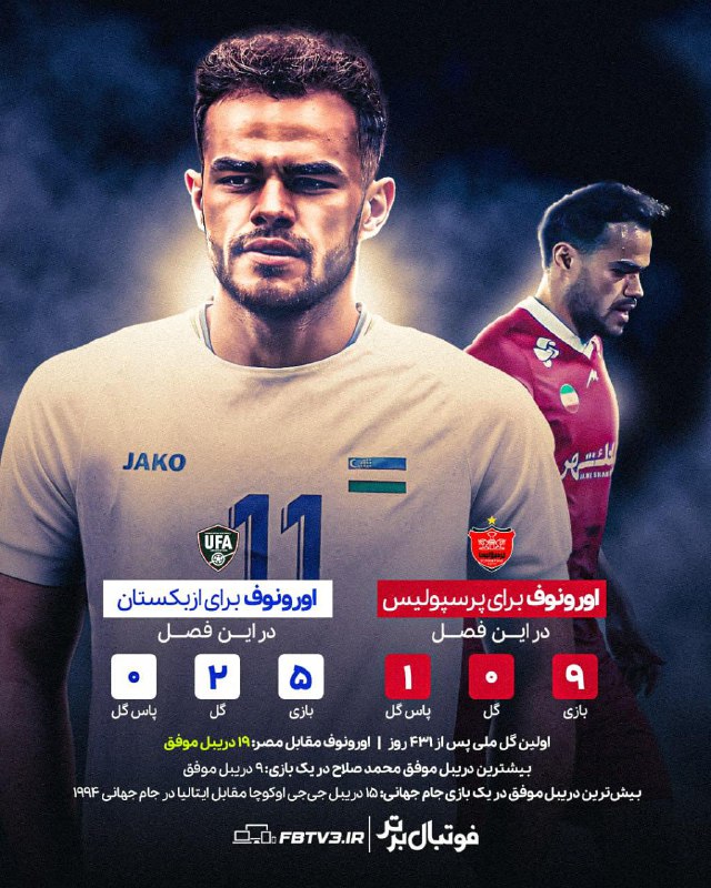 مقایسه عملکرد ارونوف در این فصل در پرسپولیس و ازبکستان