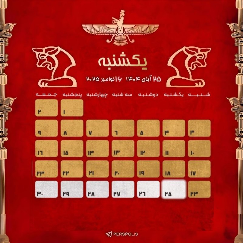 🔴امروز یکشنبه 🔴۲۵ آبان ۱۴۰۴ خورشیدی 🔴۱۶ نوامبر ۲۰۲۵ میلادی
