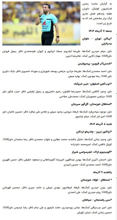 🚨اعلام اسامی داوران هفته یازدهم لیگ برتر