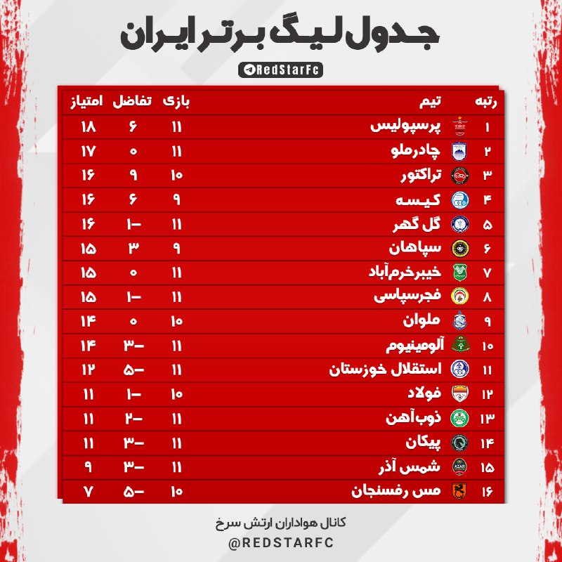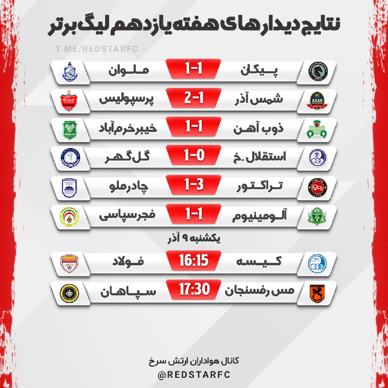 نتایج دیدار های امروز هفته یازدهم تا امروز