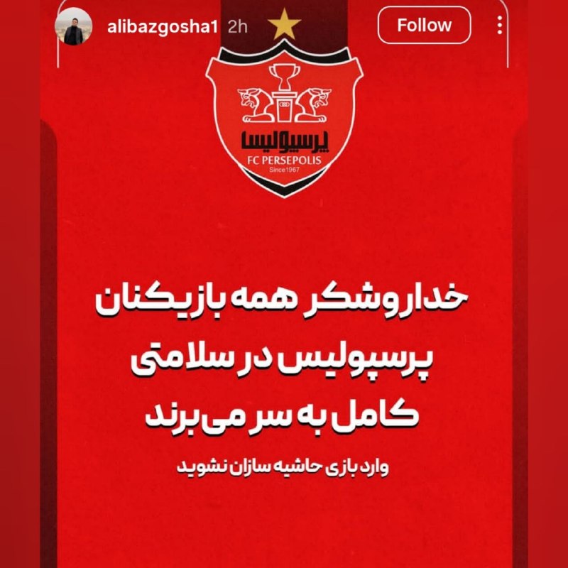 استوری افشین‌پیروانی در واکنش به بدون تماشاگر بودن بازی فردا مقابل پیکان