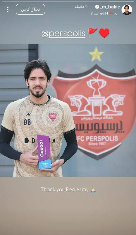 استوری باکیچ پس از دریافت جایزه بهترین گل ماه