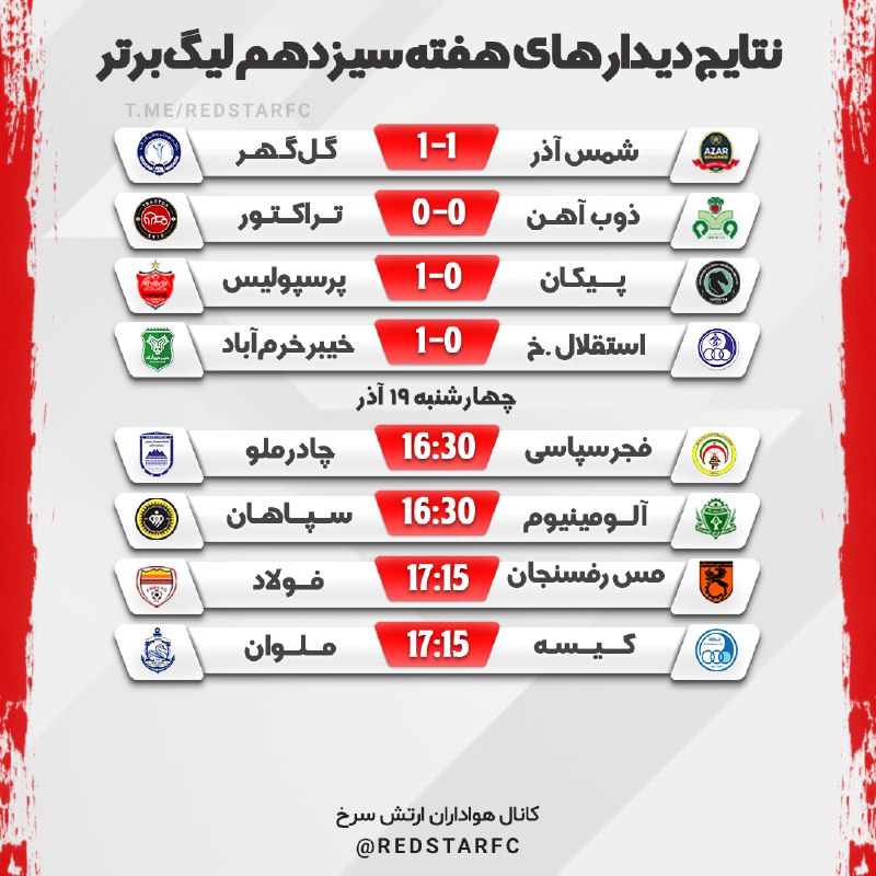 نتایج دیدار های امروز هفته سیزدهم + برنامه ادامه بازی ها