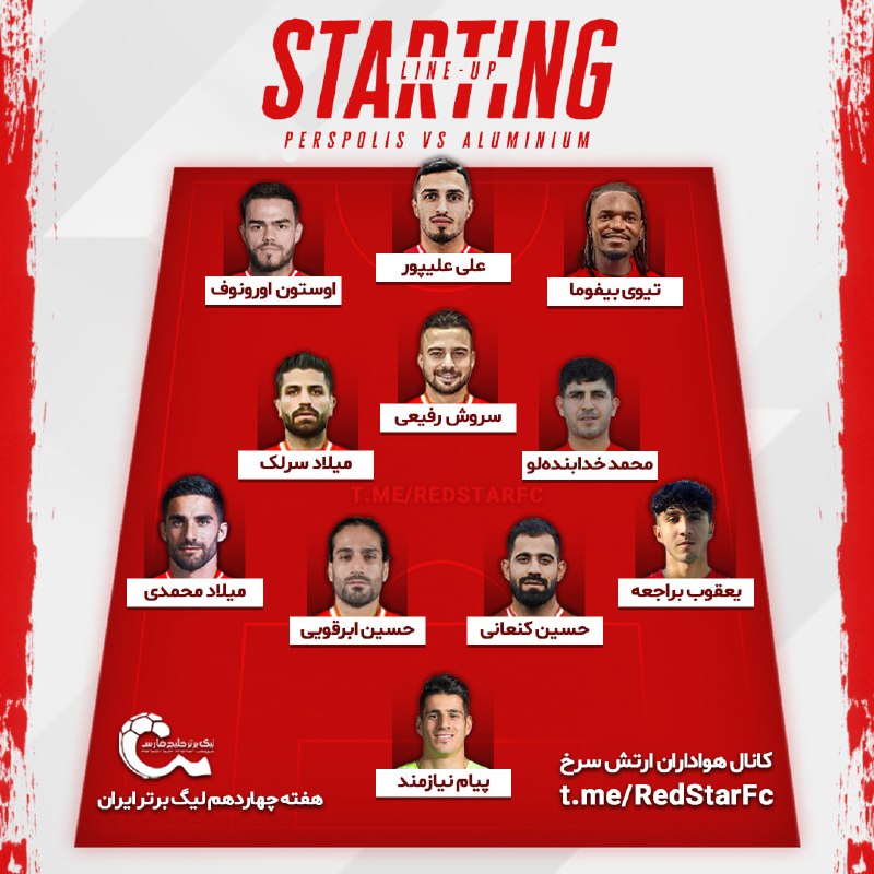 شماتیک ترکیب پرسپولیس برای‌ دیدار مقابل آلومینیوم