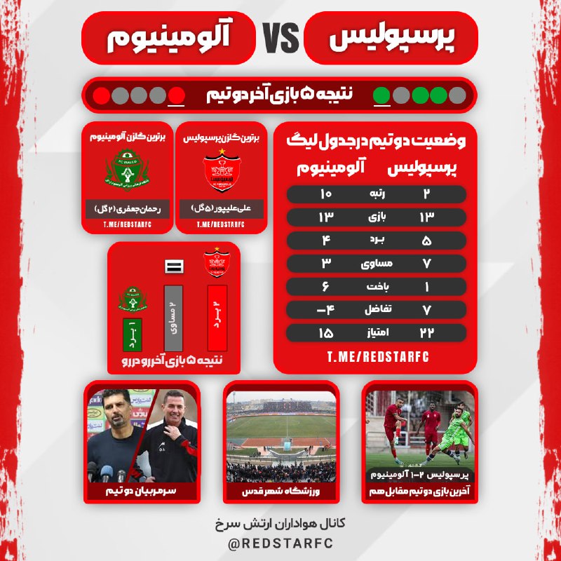 آمار پیش بازی پرسپولیس و آلومینیوم