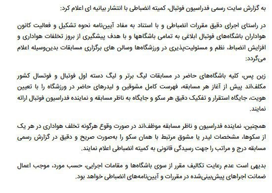 باشگاه ها باید پیش از آغاز هر مسابقه، فهرست کامل مشوقین و لیدرهای حاضر در ورزشگاه را با تعیین هویت، جایگاه استقرار و تفکیک دقیق هر سکو و جایگاه به ناظر مسابقه و نماینده فدراسیون فوتبال ارائه نمایند.