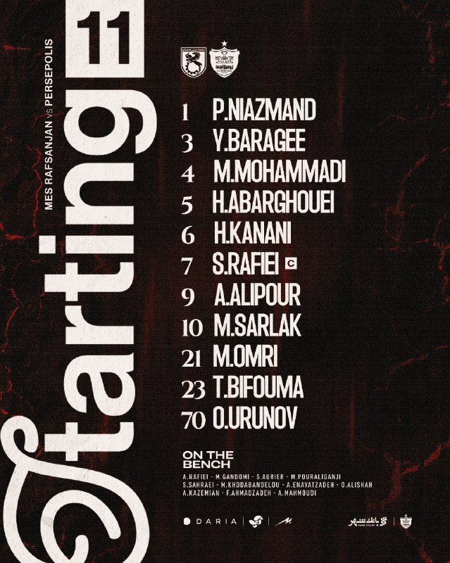 🚨🤩ترکیب پرسپولیس برابر مس رفسنجان