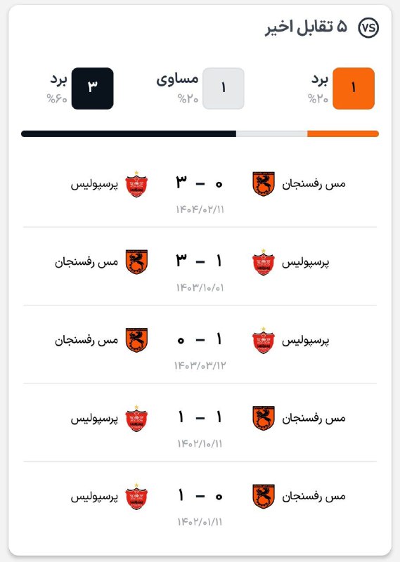 📊🔴🔴نتایج پنج تقابل اخیر پرسپولیس و مس رفسنجان